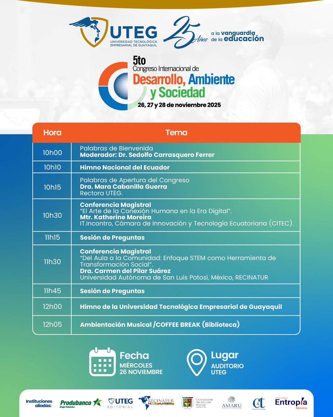 - Fecha: 26/11/2025 | Aula magna UTEG | 15h00