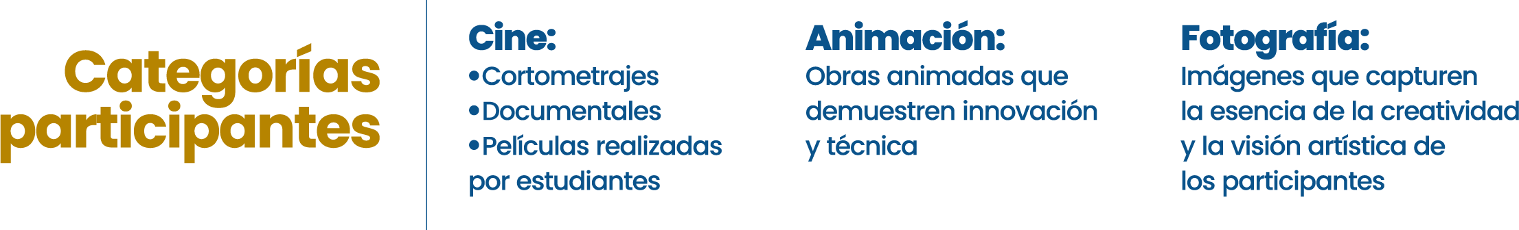 Proporcionar una oportunidad para que los estudiantes exhiban sus trabajos en cine, animación y fotografía.