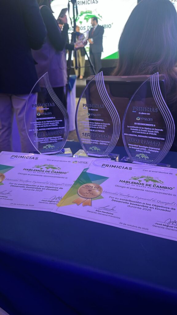 #UTEG destacó en los Premios @primicias.ecuador “Hablemos de cambio. Por un mundo sostenible”, evento organizado con el apoyo de @ypsilom_sustainability. Los asistentes reconocieron el importante impacto de la UTEG en la consecución de los Objetivos de Desarrollo Sostenible (ODS) durante el 2025, consolidando a la institución como un referente en sostenibilidad a nivel nacional. 🌱♻️